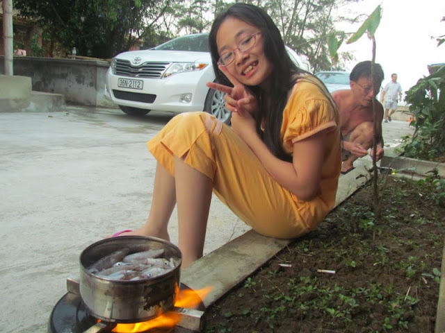Buổi chiều thì mua mực sim vừa nhặt trong mớ cá kéo chiều, lại luộc ngay trong sân và giao Miu làm Hậu cần |